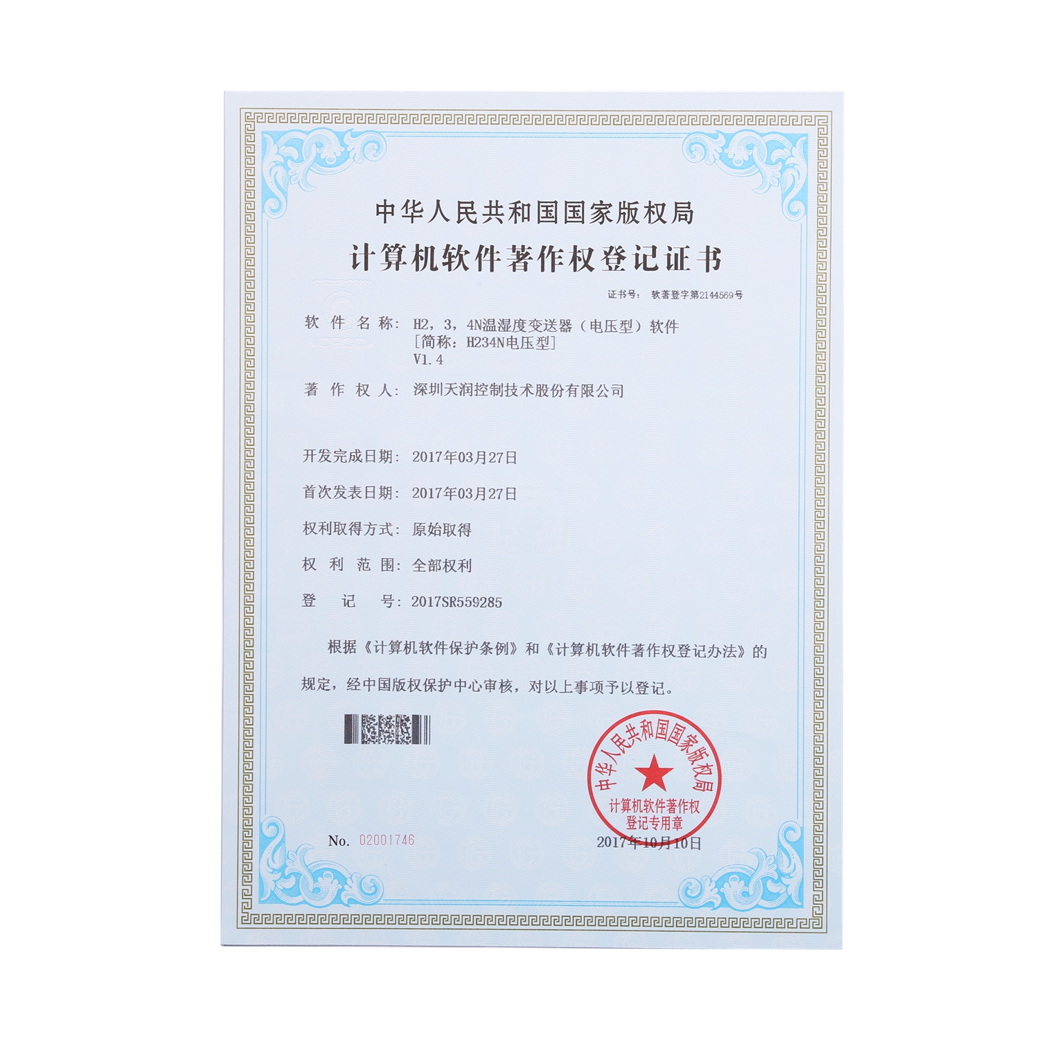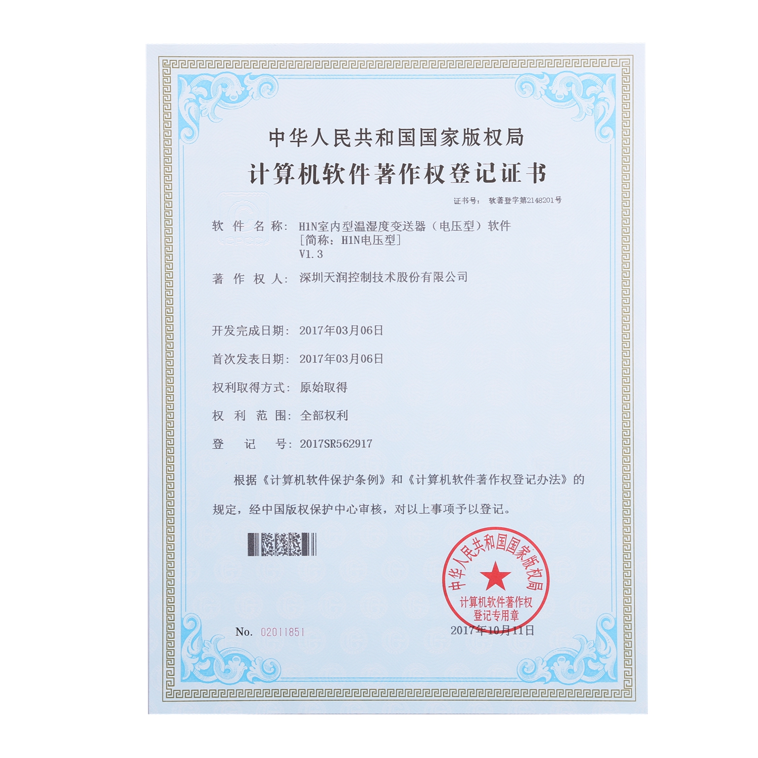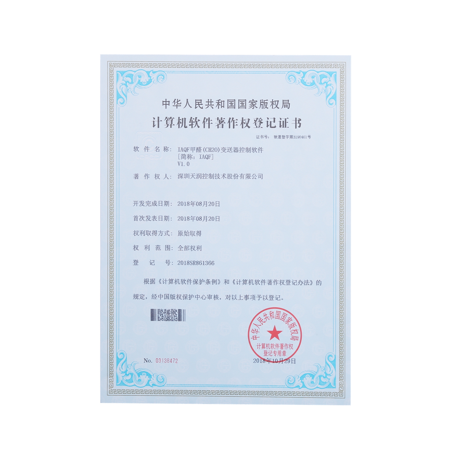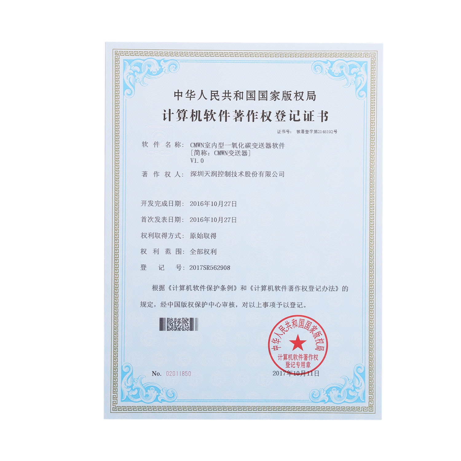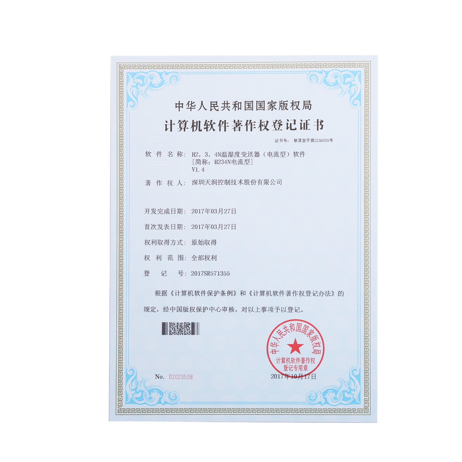 計(jì)算機(jī)軟件著作權(quán)登記證書