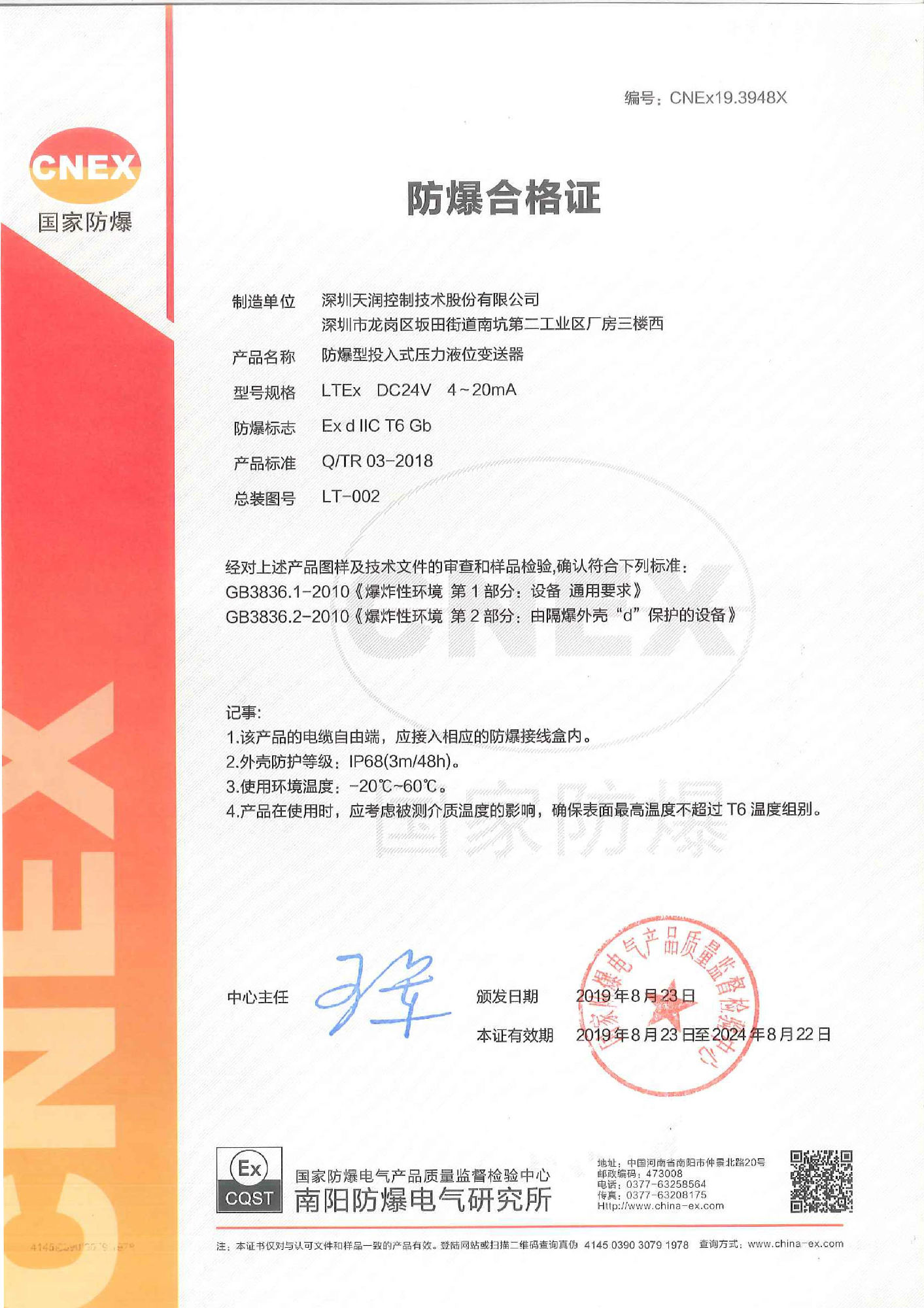 公司的防爆型壓力液位變送器產(chǎn)品LTEx系列已經(jīng)通過(guò)國(guó)家防爆認(rèn)證,給我們的防爆產(chǎn)品家族再添新成員。