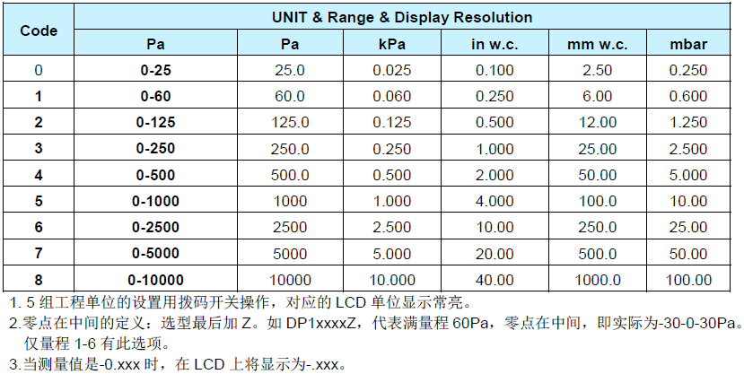 顯示:可選大屏幕LCD數字顯示(帶單位和背光(4~20mA無))顯示分辨率:0.1Pa或相當于0.1Pa(撥碼切換單位)