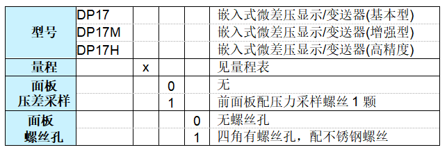 2.零點(diǎn)在中間的定義:選型最后加Z。僅量程1-5有此選項(xiàng)。如DP171xxZ,代表滿(mǎn)量程60Pa,零點(diǎn)在中間,即實(shí)際為-30-0-30Pa。