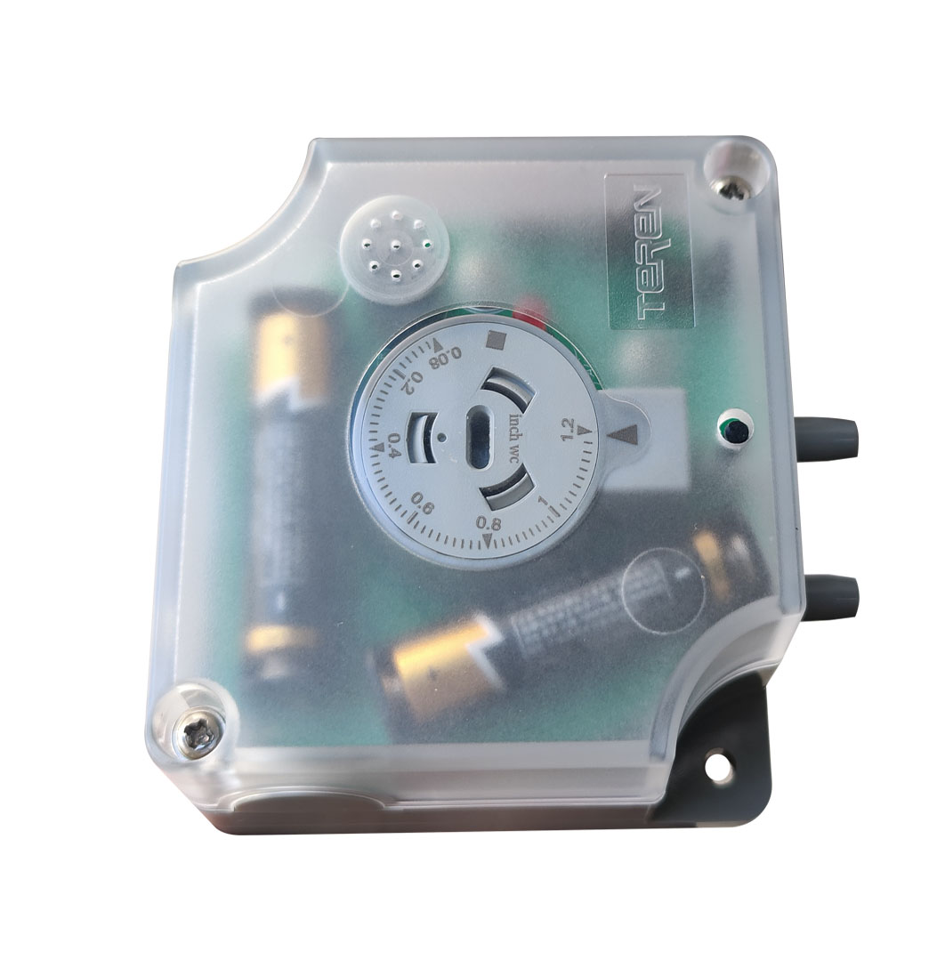 安裝:垂直,壓力接口向下。此為開關校準位置。如必須水平安裝時,實際設定點比刻度點加20Pa(封蓋向上)或減約10Pa(封蓋向下),詳見使用說明書。