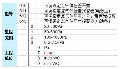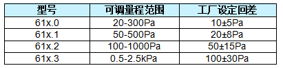 量程范圍:20~300Pa,50~500Pa等可選,詳見選型表