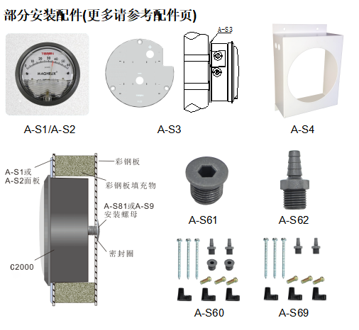 標準配件:A-S60(適用于二對壓力接口)或A-S69(適用于一對壓力接口),詳見配件說明