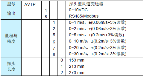 量程與精度:0~1m/s-0~30m/s可選,精度不同,詳見選型表