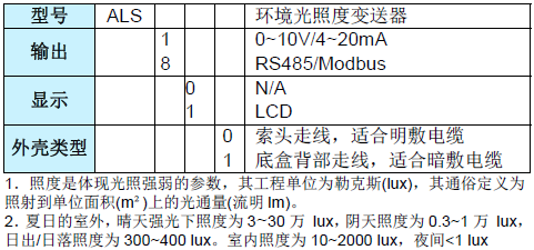 量程:0~1000/2000/5000/10000 lux (跳線選擇)