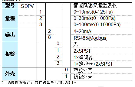 量程范圍:0-10/30/100m/s,見選型表