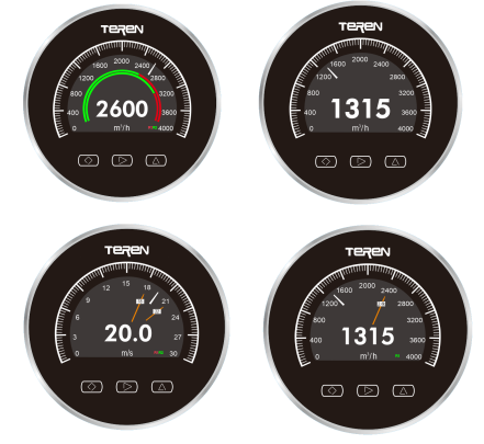 1、獨創(chuàng)使用彩色TFT-LCD作為表盤顯示,融合傳統(tǒng)指針和數(shù)字顯示,可實現(xiàn)壓差/風(fēng)速/風(fēng)量檢測、顯示、設(shè)置、輸出和報警控制的一體化功能,有豐富美觀的顯示界面