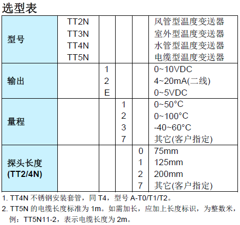 電纜(TT5N):黑色,硅橡膠電纜,2×0.3mm2,長1m(可定制),工作溫度-60~180°C,絕緣電阻>100MΩ(25°C)