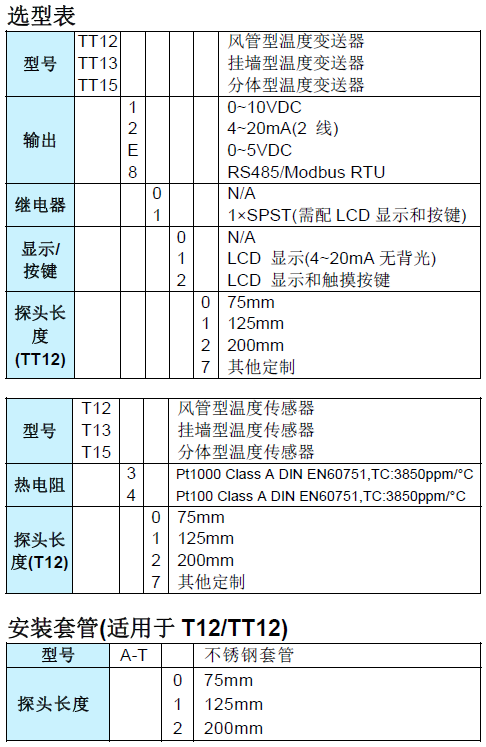 2、包含風管(T/TT12)、掛墻(T/TT13)、分體(T/TT15)等安裝型式,另配套管后可實現各種插入型安裝,適合各類工業應用
