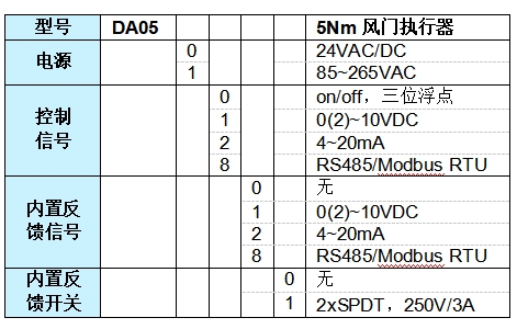 控制信號:on/off,三位浮點,0(2)~10VDC(輸入阻抗100KΩ),4~20 mA (輸入阻抗200Ω),RS485/Modbus-RTU