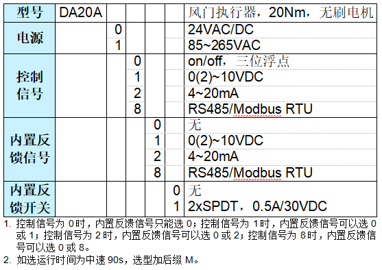 控制信號:on/off,三位浮點,0(2)~10VDC(輸入阻抗100KΩ)